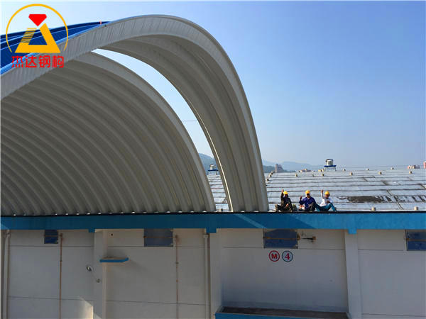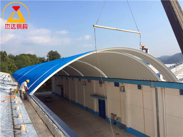 在拱腳和拱形屋頂中央兩側(cè)安裝角鋼支撐,保障結(jié)構(gòu)穩(wěn)定。