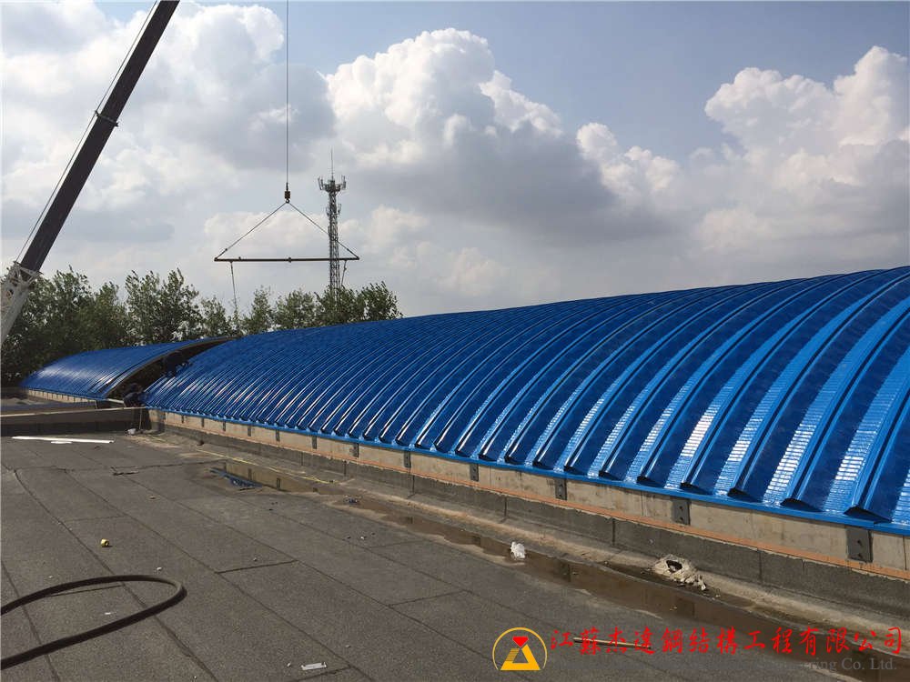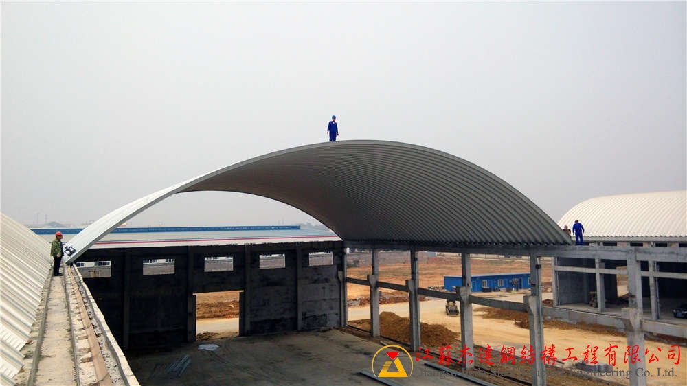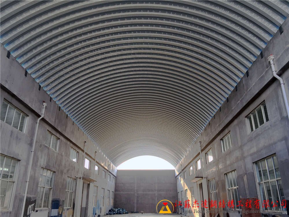拱形屋頂在工業(yè)建筑中較為常見(jiàn),尤其適用于連接兩棟磚混結(jié)構(gòu)廠房之間的過(guò)道部分,既能實(shí)現(xiàn)空間覆蓋,也方便施工和維護(hù)。