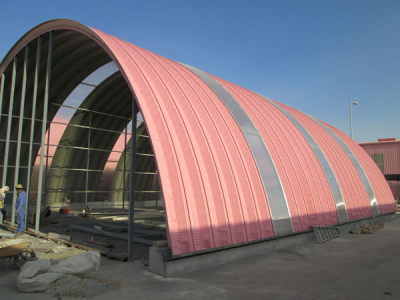 江蘇杰達鋼結構工程有限公司承接工業廠房施工,無梁金屬波紋拱形屋面(拱形屋頂)制作安裝,鋼梁、C型鋼及彩鋼瓦加工,具有鋼結構施工專業資質。