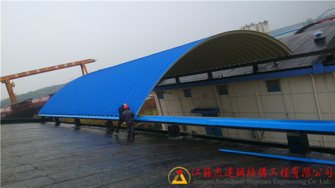 設計上,該拱形屋頂結構簡潔且合理,既能滿足堆放設備的空間需求,也能確保人員通行的便利性。通過合理的拱形曲線分布,屋頂的受力更加均勻,提升整體結構的安全性能。