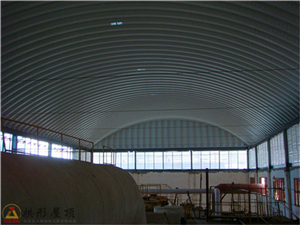 大跨度拱形屋面結構無梁無檁,無須屋架,增大空間一次成型,大跨度無支撐可達38米。無粱無檁,墻上,落地均可實現建筑美觀。大跨度的拱型屋面,形如飛虹,體態輕盈,給人一種全心美的感受。