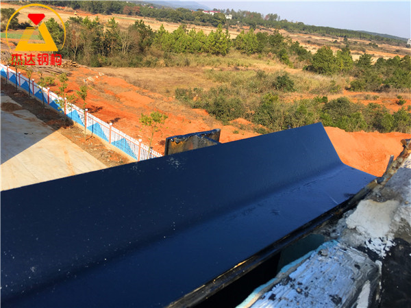 托板部分通過焊接固定在牛腿型H鋼上,形成穩(wěn)固的支撐結(jié)構(gòu)。這種結(jié)構(gòu)不僅保證了拱形屋頂?shù)某休d能力,也方便了后續(xù)屋面板的安裝和固定。