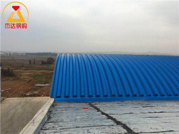 江西高安村前糧管所倉間罩棚工程采用無梁拱形屋頂設(shè)計,結(jié)合現(xiàn)代彩涂卷材,提升倉庫的使用功能與耐久性,施工周期緊湊,工藝流程規(guī)范。