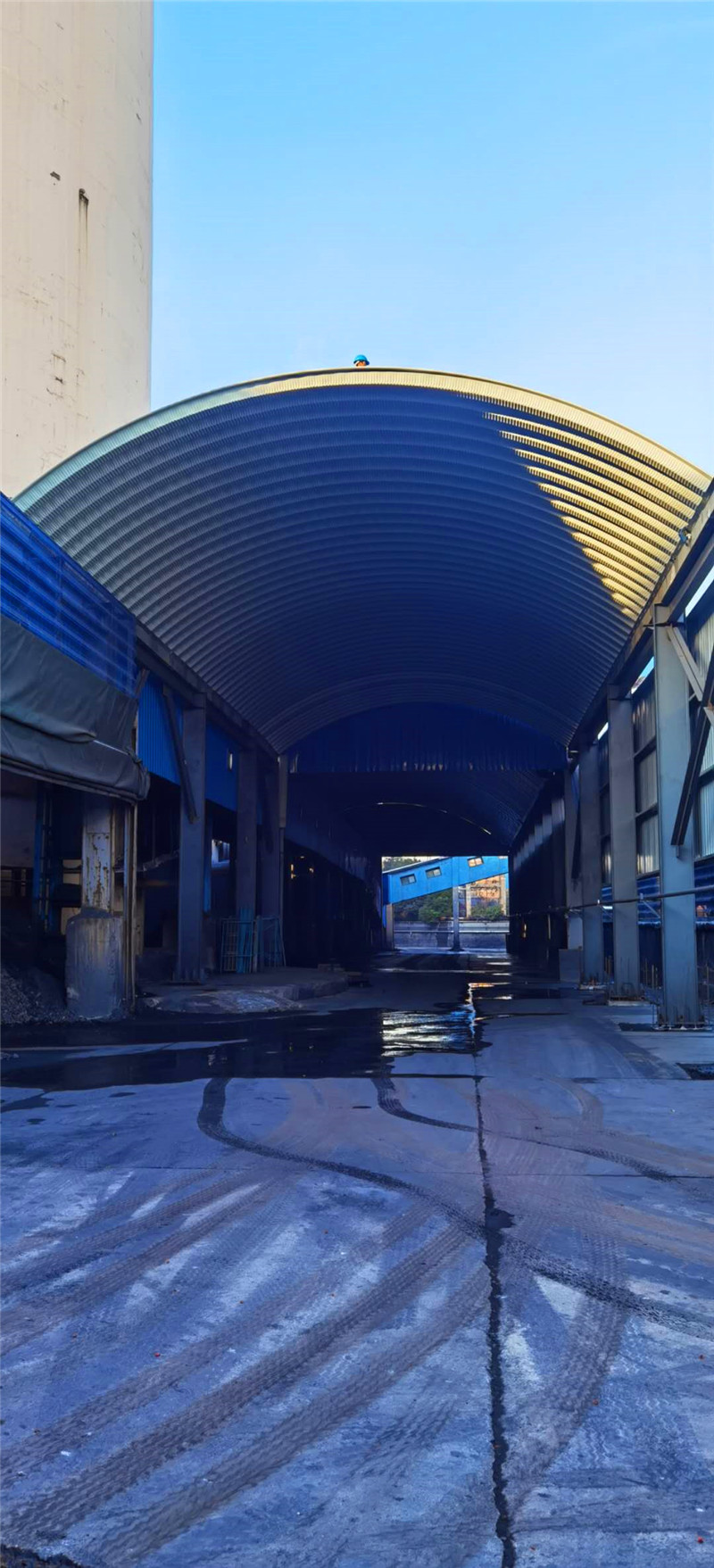 拱形波紋鋼屋蓋結(jié)構(gòu)在防塵、耐候及施工周期方面表現(xiàn)出較好優(yōu)勢,適用于煤棚封邊及混凝土廠等需要揚塵治理和封閉頂棚的工業(yè)項目。