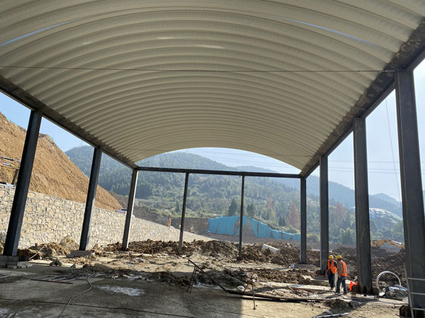 四川達州水泥廠料棚拱形屋頂工程