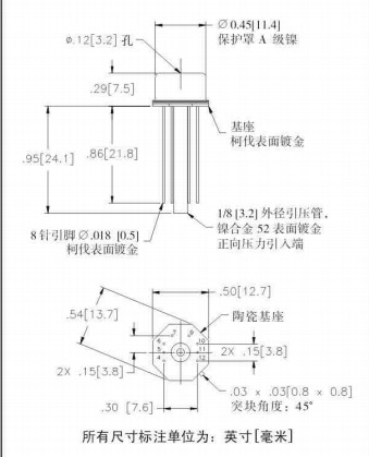 23型傳感器是經(jīng)過溫度補(bǔ)償,采用TO-8金屬結(jié)構(gòu)封裝的硅壓阻式傳感器,具有性能優(yōu)良,長期穩(wěn)定性好的特點(diǎn)。通過激光刻蝕的電阻用于調(diào)節(jié)差動(dòng)放大器的增益來校正傳感器的壓力靈敏度變化,從而在高電平輸出時(shí)具有良好的互換性,互換誤差僅為±1%