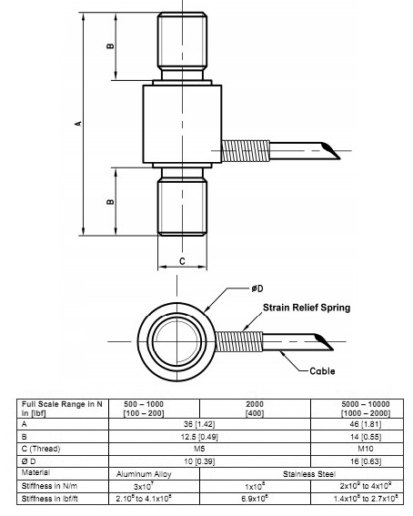 的2至2kN量程,可選高電壓輸出模式。XFTC300的雙外螺紋螺栓外形可容易應(yīng)用于工業(yè)及OEM環(huán)境。應(yīng)變消除彈簧增強(qiáng)了電纜輸出。