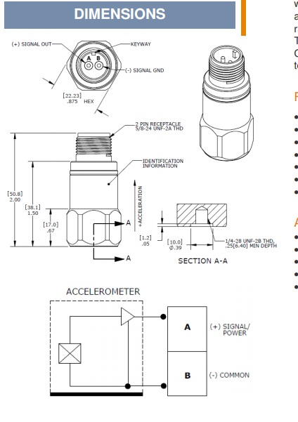 內(nèi)部屏蔽 IEPE 振動傳感器工業(yè)狀態(tài)監(jiān)測8811-01這款加速度傳感器的動態(tài)量程為 ±5 g 至 ±80 g,具備最高超過 10 kHz 的平滑帶寬。 8811-01 加速度傳感器采用頂端出口 MIL-C-5015 連接器,工作溫度范圍為 -55°C 至 +120°C。